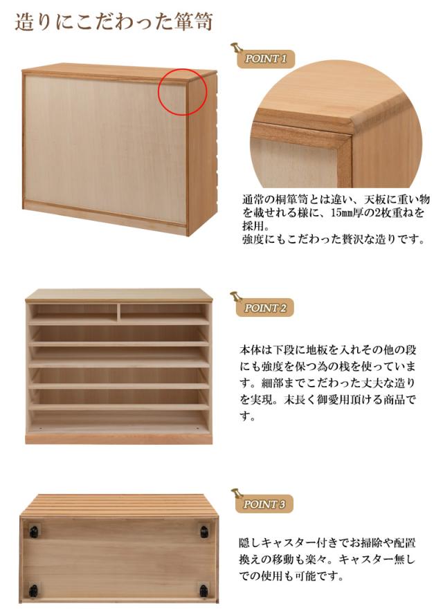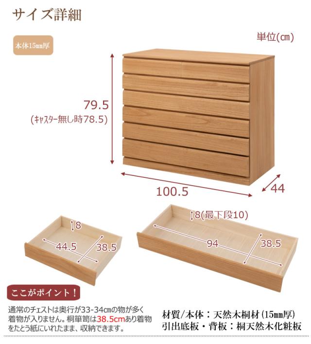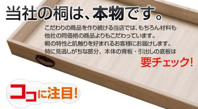 | 商品仕様 | 本体:天然木桐材(水性塗装)、引出し底板・背板:天然木桐化粧板 |