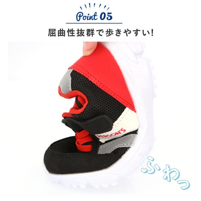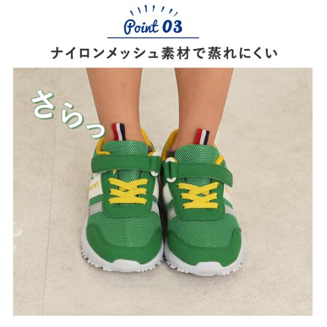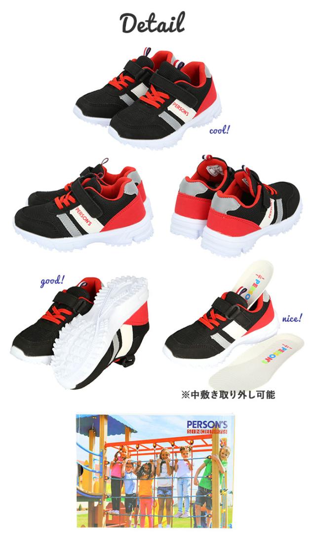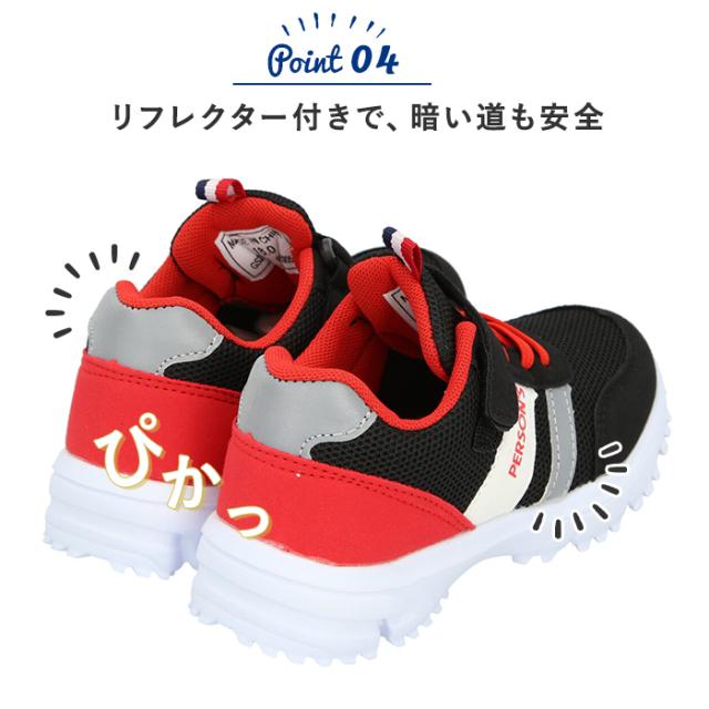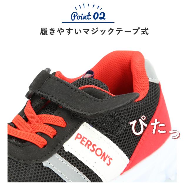 | 商品説明 | ・軽量で足が疲れにくく履きやすい!PERSONSのマジックテープ式のキッズスニーカーが新登場。 ・アッパー部分はナイロンメッシュ素材を使用しているので、足が蒸れにくく快適に履ける。 ・かかとの後ろや両サイドにリフレクター(反射板)を採用!夜間の車や自転車のライトを反射して、お子さまの安全を守ってくれる。 ・柔らかいソールを使用しているので、屈曲性が抜群で正しい歩行をサポートしてくれる。 ・中敷きが取り外し可能なので、洗いやすくいつでも清潔を保てる。 ・ベロ部分のトリコロールカラーがオシャレポイント♪ ・保育園・幼稚園で毎日大活躍! |
