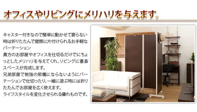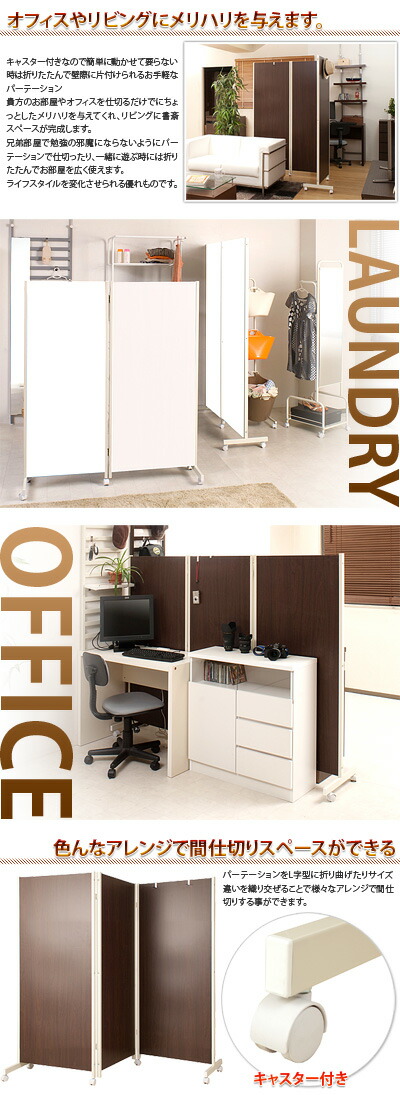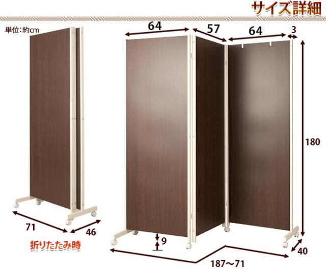 オフィス衝立3連、幅187cm高さ180cmの業務用パーテーション。打合せスペースや待合室、事務所の間仕切りや診察室に、折りたたみでコンパクト、キャスター付きで移動も楽なパーティション、木目が美しいナチュラルとダークブラウン、人気のホワイト、送料無料品質の高い日本製、業務用パーテーションです。コンパクトに折り畳み出来る。展示用のパネル、美容室やサロン、公共施設の仕切りや応接の目隠しにも最適。パーテーション パーティション キャスター キャスター付き キャスター付 可動式 おしゃれ オフィス ついたて 間仕切り 木製 衝立 スクリーン ホワイト 部屋 仕切り 壁 家具 洋風 目隠し 折りたたみ 3連 高さ180cm
