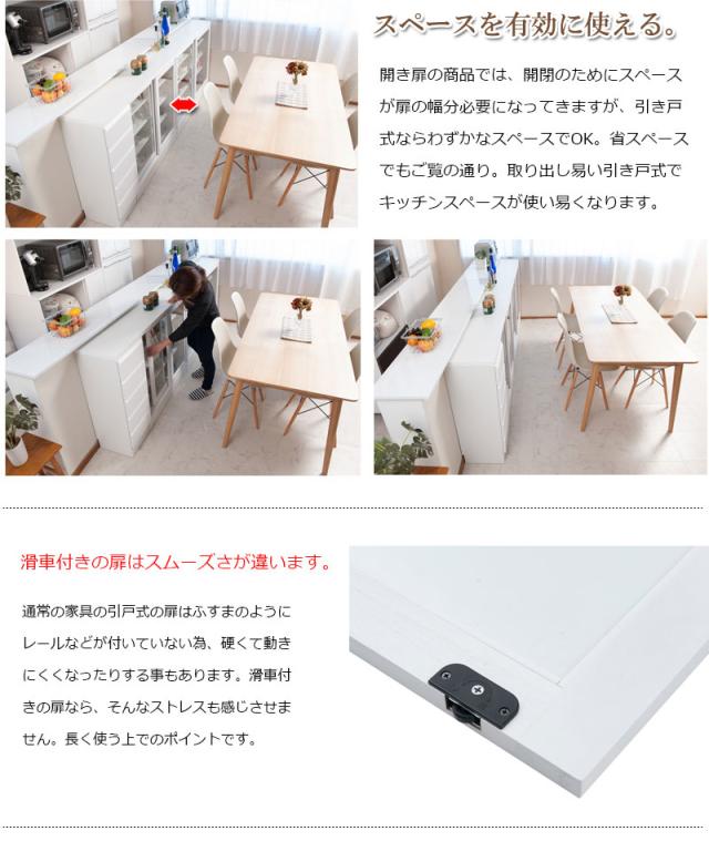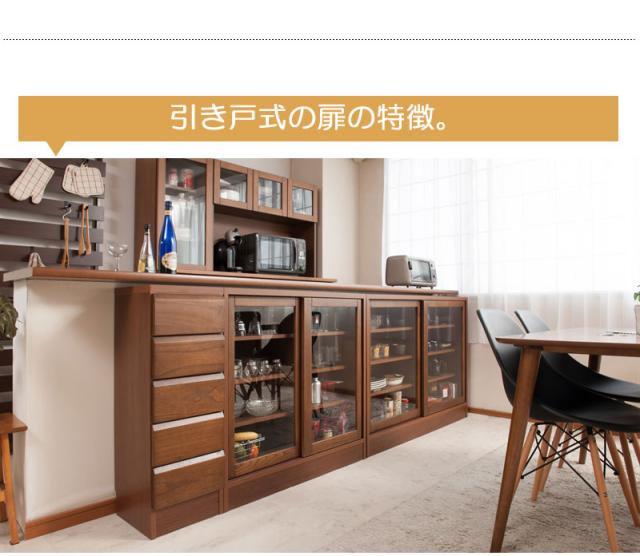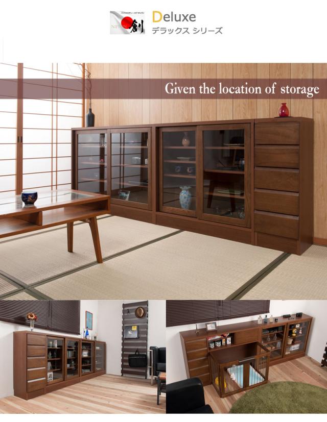 圧迫感がなく、シンプルデザインに仕上げたDELUXシリーズ。桐の木目とデザインが優しい雰囲気を醸しだす、職人が組み上げた、日本製の完成品のカウンター下収納。引き戸式のカウンター下収納は、滑車付きで動きもスムーズ。引き戸式ならわずかなスペースで開閉が可能。取り出し易い引き戸式でキッチンスペースが使い易くなります。リビング・ダイニングを効率よく使えて、綺麗に収納。CDやDVD、コミックなども綺麗に収納ができます。他のシリーズと合わせて、キッチンやリビングなどでお洒落に収納できます。