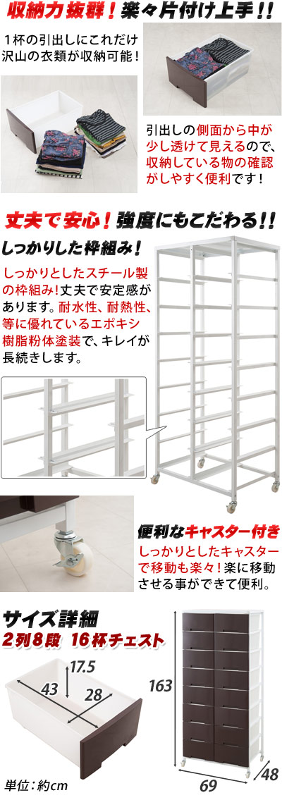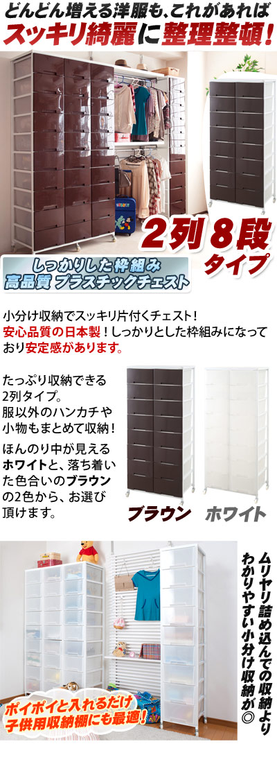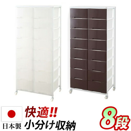 チェスト 日本製 幅69cm プラスチックチェスト 2列8段 ブラウン/ホワイト 日本製 キャスター付き 収納ワゴン 大量収納 衣類 クローゼット 白 ランドリーラック 半透明プラスチック 引き出し タンスたんす/通販/送料無料 【送料込み】 新生活