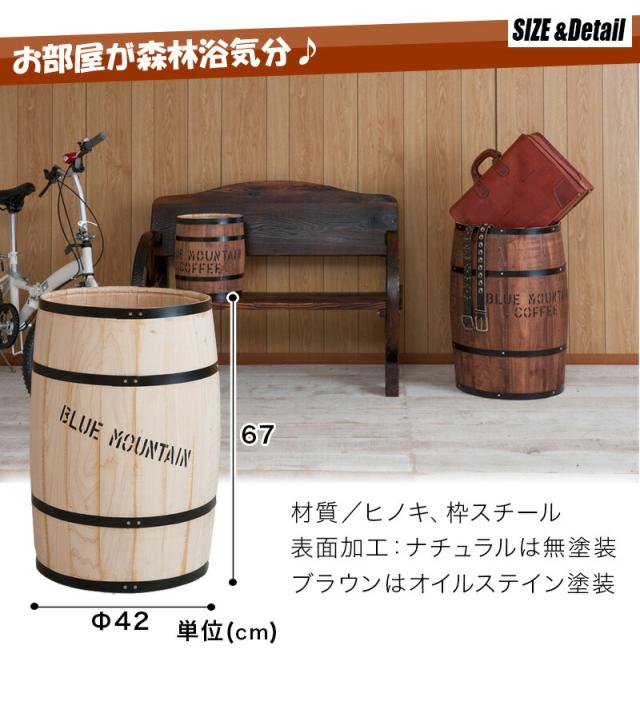 木樽 高さ67cm 特大樽 コーヒー樽 ブラウン/ナチュラル 国産ヒノキ製 おしゃれ カントリー調 カントリー風 アメリカン雑貨 収納 ボックス 木製 天然木 タル 樽型 テーブル 台 バレル 鉢カバー ゴミ箱 ごみ箱 店舗什器 木製/通販/送料無料 シンプル 新生活 組立不要