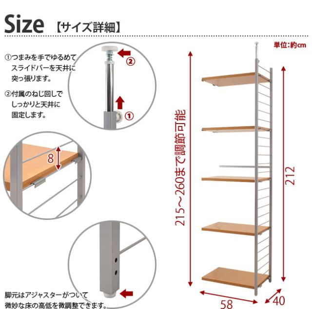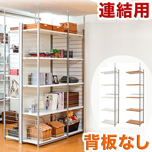 突っ張り 壁面 間仕切り ラック 幅58cm 連結用 背板無しタイプ ホワイト/ナチュラル スチール 事務用書棚 業務用本棚 CDラックDVDラック ブックシェルフ 一人暮らし 漫画 DVD 【送料無料】 木製 薄型 通販 北欧 テイスト