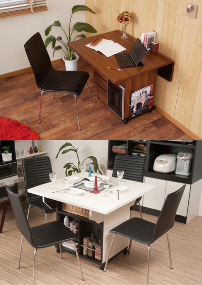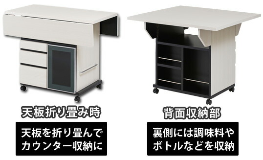 商品には環境や人に優しい低ホルマリンを使用、使う人に配慮した良品質。左右の天板は簡単に折りたたむことができ、用途に合わせて使い分けることができます。