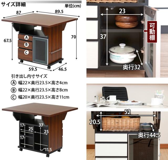 | 本体サイズ | 約幅89.5×奥行(閉じ時)55(片バタ時)71(両バタ時)87×高さ70(キャスター含む)cm |