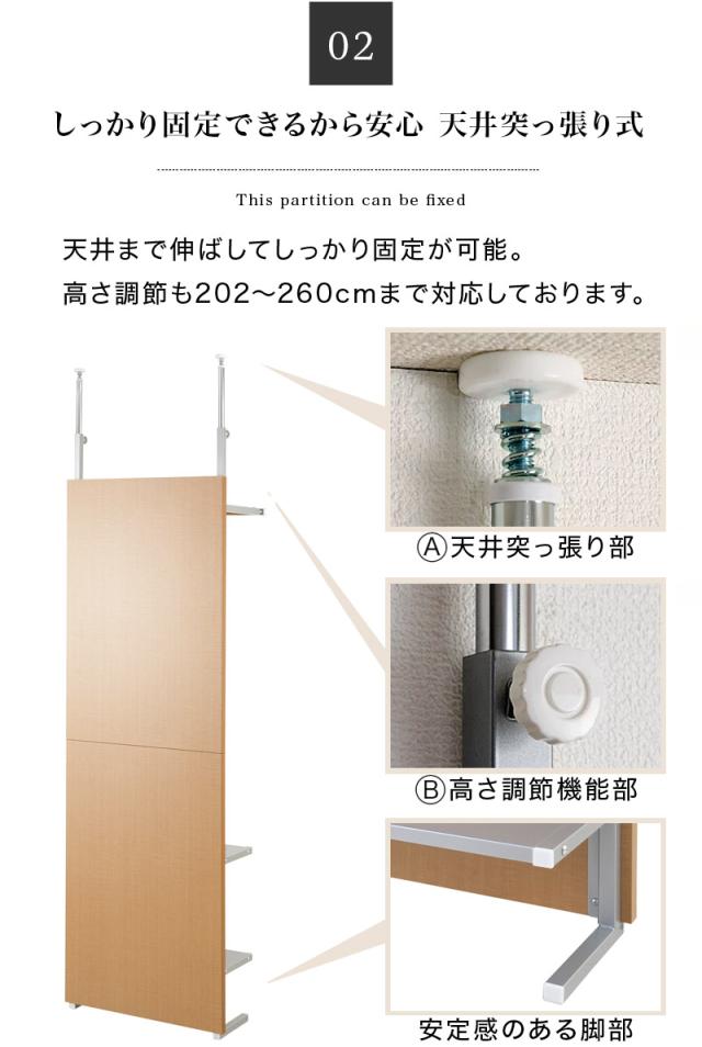ハンガーラック パーティション 幅60cm ブラウン/ホワイト/ナチュラル スチール 木製パネル 日本製 突っ張り 間仕切り クローゼット パーテーション ウォールラック 白 衝立 つっぱり 家庭用/薄型/通販/送料無料 【送料込み】 新生活 助成金 補助金 給付金
