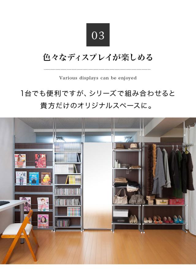 | 商品仕様 | ■仕様/フレーム:スチール(エポキシ粉体塗装)、ハンガー:スチール(メッキ仕上げ)、パネル:プリント紙化粧繊維板 ■耐荷重量/ハンガー10kg、棚:3kg |