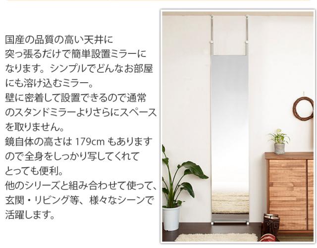 壁掛けミラー 日本製 壁面ミラー 突っ張りミラー 薄型 壁面鏡 ウォールミラー 壁掛け ダンス ノンフレームの全身ミラー 全身鏡