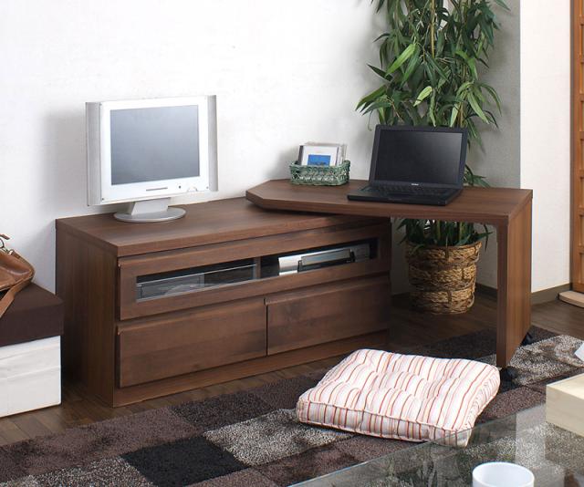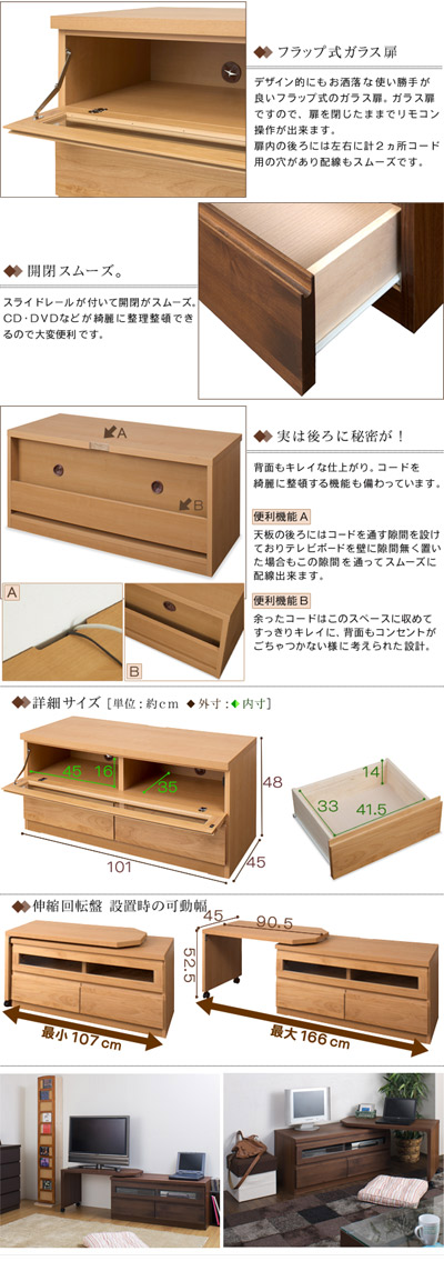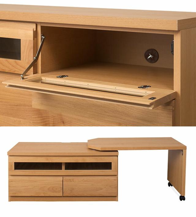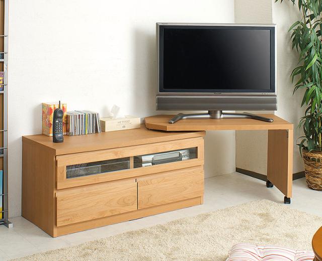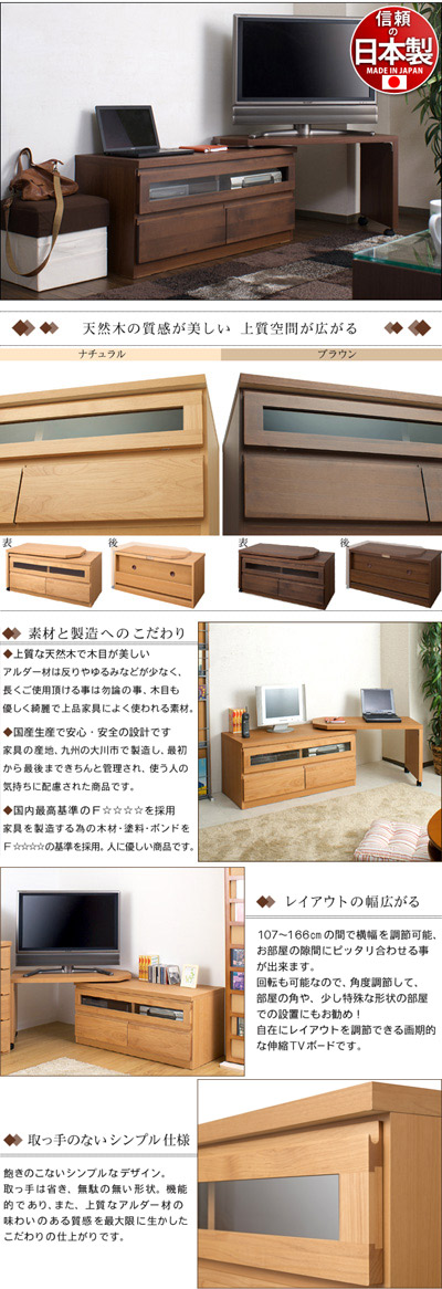 テレビ台 TV台 コーナー 幅107〜166cm 木製 ブラウン/ナチュラル 日本製 天然木 完成品 ローボード 回転 伸縮テレビ台 おしゃれ TVボード W100 モダン フラットデザイン 32型 37v用 テレビボード 国産品 幅101cm 【送料無料】/アルダー材/北欧 シンプル 新生活 組立不要