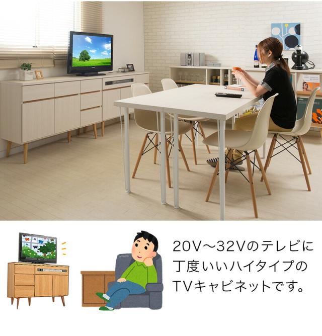 テレビ台 110cm幅 キャビネット 日本製 ダイニング 台所 ナチュラル ホワイト 完成品 白 収納 TVキャビネット 木製 おしゃれ 引き出し 32V 24v対応 高さ80cm 北欧風 テレビ台 テレビボード ハイタイプ 北欧 プッシュ式扉