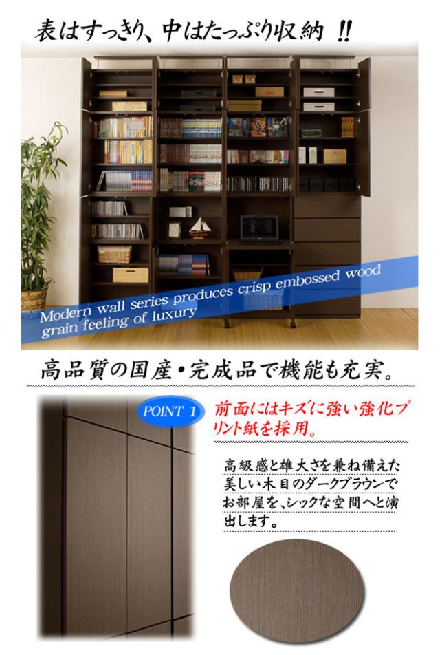 壁面収納 幅60cm天井つっぱり機能 フラップ扉デスクで机になる多機能な7扉付き壁面ラック 日本製の本棚 高さ最大253cm大容量の書棚 完成品ウォールラック 木目が美しいダークブラウンと人気のホワイト 転倒防止の倒れないハイタイプ突っ張り式キャビネット 送料無料