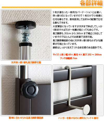 | サイズ:(約)幅60×奥行4×高さ202〜260cm フック出幅約7cm | ||||