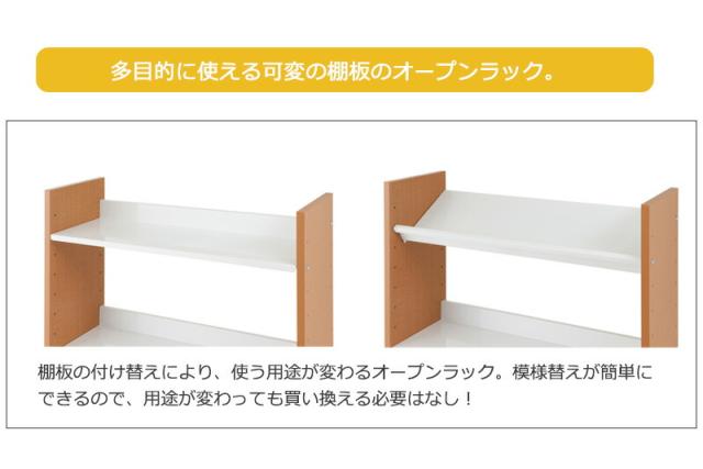 | 商品仕様 | 側板:プリント紙化粧繊維板 棚板:スチール(エポキシ樹脂粉体塗装) 棚板/可動式5枚(6cmピッチ28段階) |