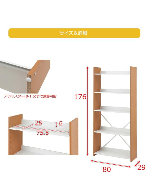 オープンラック 幅80cm 高さ176cm 5段 可動棚 可動式 可変自在棚 ホワイト/ナチュラル/ブラウン 白 スリム 省スペース シェルフ ラック 棚 壁面ラック おしゃれ インテリア 頑丈棚 スチール棚 日本製 おしゃれ 通販/送料無料 人気【送料込み】