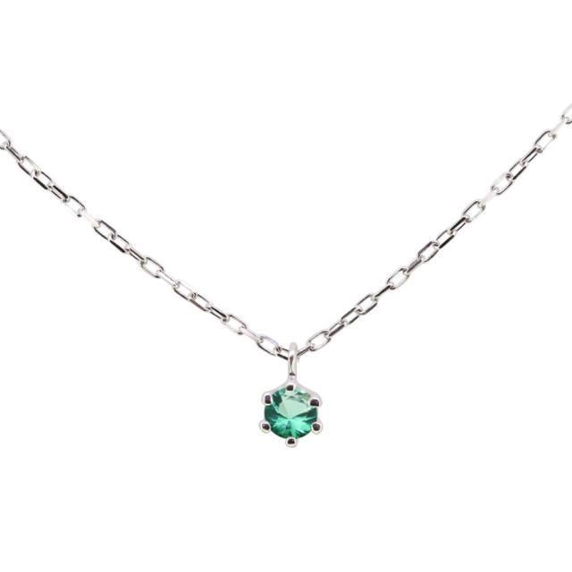 レディース ネックレス シンプル 一粒 エメラルド ペンダント 華奢 プラチナ 小ぶり