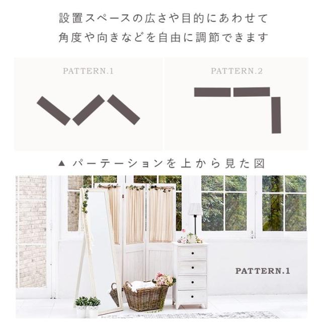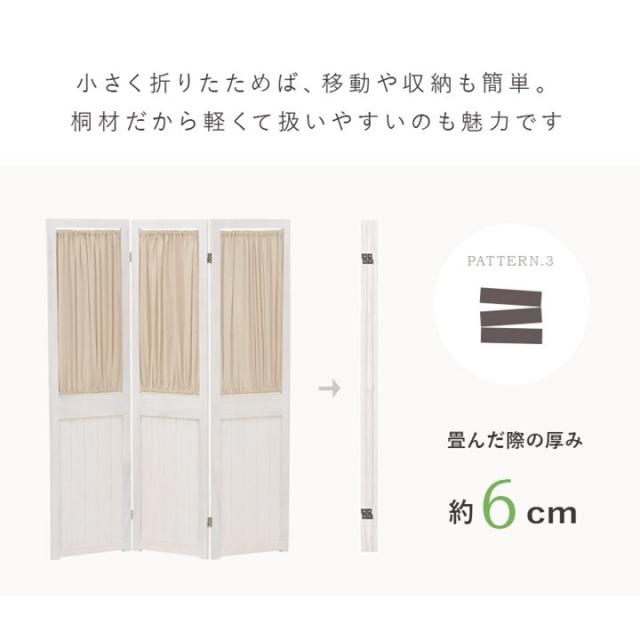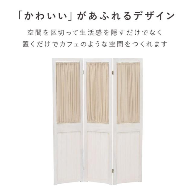 間仕切り パーテーション 3連 衝立 カーテン付き 木製 シャビーウッドファニチャー 仕切り 目隠し