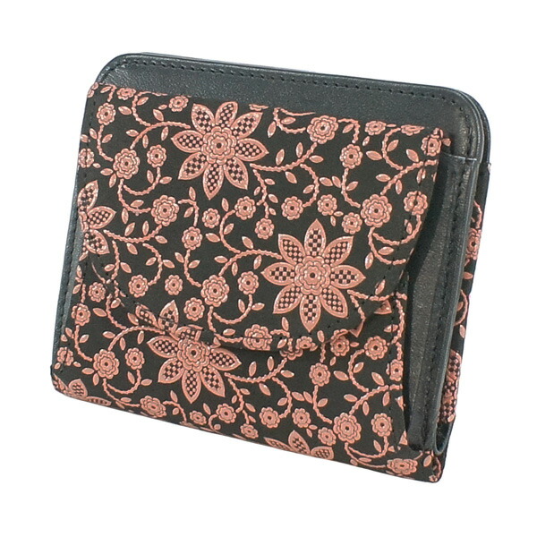 印伝 甲州印伝 印傳屋 上原勇七 財布 二つ折り財布 2219 クレマチス 黒地×ピンク漆 鹿革 本革 レザー 花柄 ブランド 冬ギフト バレンタイン 贈り物 YM02