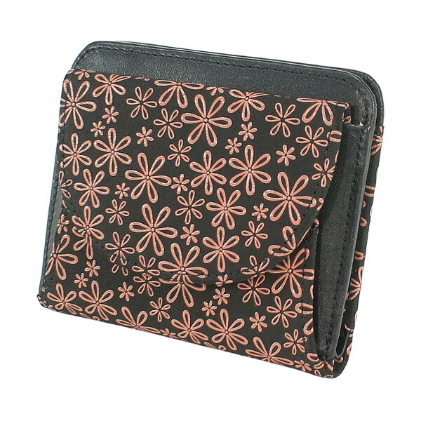 印伝 甲州印伝 印傳屋 上原勇七 財布 二つ折り財布 2219 雪割草 黒地×ピンク漆 鹿革 本革 レザー 花柄 ブランド 冬ギフト バレンタイン 贈り物 YM02