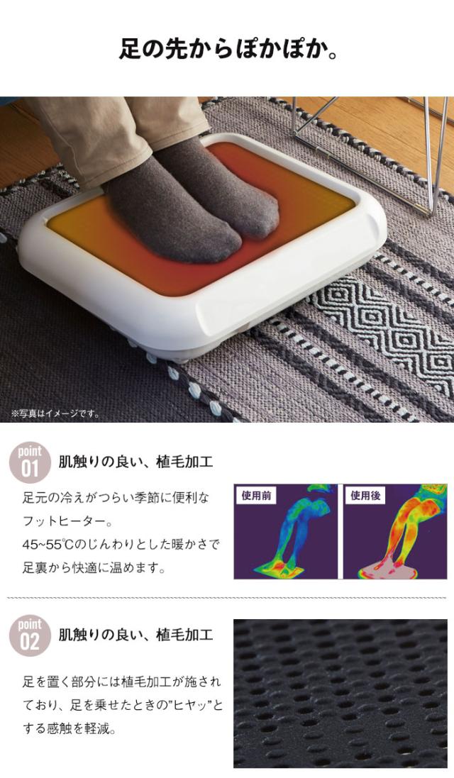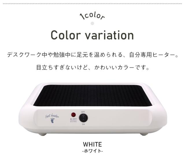| ◇足置き角度5.5度 ◇4時間自動OFF【切り忘れ防止】 ◇すべり止め植毛加工 ◇無音・無排気のエコ暖房 ◇シンプルスイッチ ◇色:WH ホワイト |