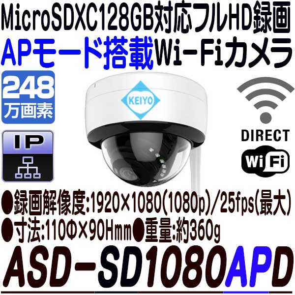 ASD-SD1080APD【ダイレクト接続対応248万画素ドーム型SDカードカメラ】 【ネットワークカメラ】 【IPカメラ】 【Wi-Fiカメラ】