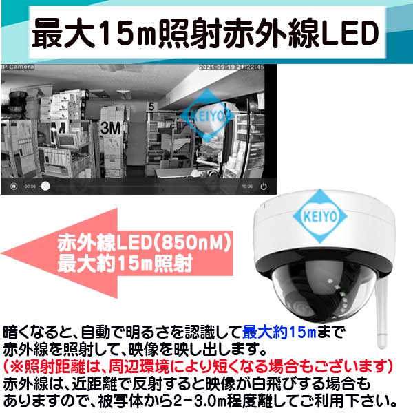 最大照射距離15Mに対応した赤外線LED12個を搭載しています。