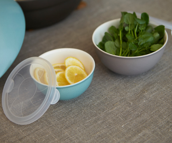 蓋付きのボウルなのでラップを使わなくても、余った食材や下ごしらえをしたものをそのまま冷蔵庫で一時保存することができます。直径が約10.7cmの小ぶりなサイズなので蓋を外して、サラダボウル、シリアルボウル、デザートボウルなどにも使用することができます。
