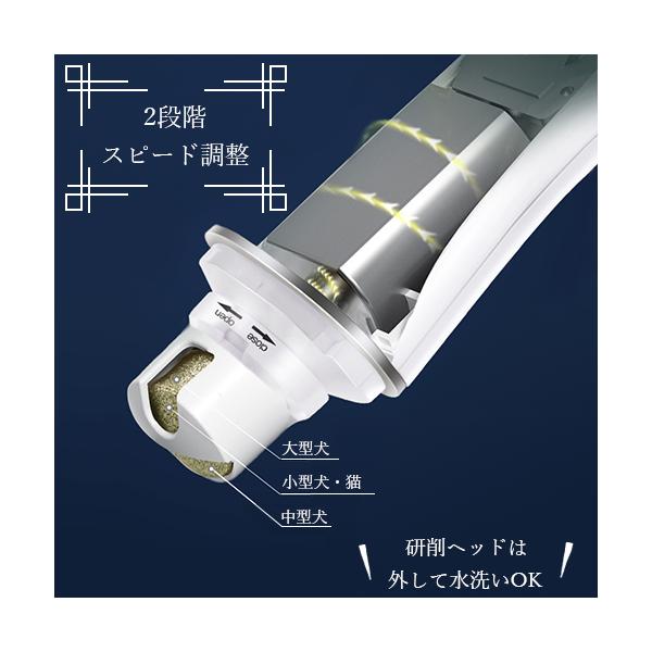 1段階スピードは6000rpm、2段階スピードは6800rpm ペットの爪の厚み・硬さによりスピードの選択ができます。