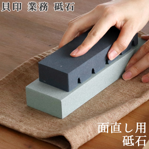 良い包丁を長く大事に使うためには、日ごろのメンテナンスが欠かせません。本格的な研ぎ直しをする際は角砥石を使い、シャープナーのような簡易研石は、普段のお手入れで補助的に併用するのがおすすめです。刃物で有名な貝印の業務シリーズ砥石は、用途に合わせたプロ仕様の本格砥石。包丁を本格的に研ぐには「荒砥石」→「中砥石」→「仕上砥石」の順に、荒い目の砥石から初めて、次第に目の細かい砥石で仕上げていきます。「面直し用砥石」は砥石自体の面を平らにならすのための砥石で、包丁用砥石と一緒に持っておきたい商品です。