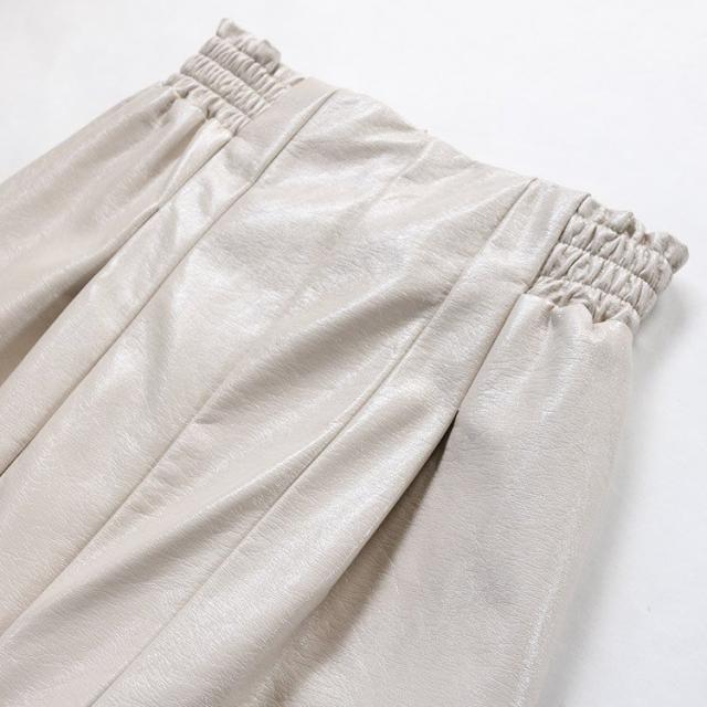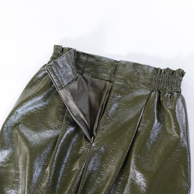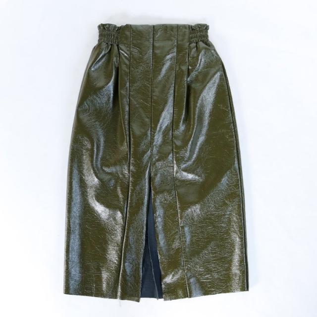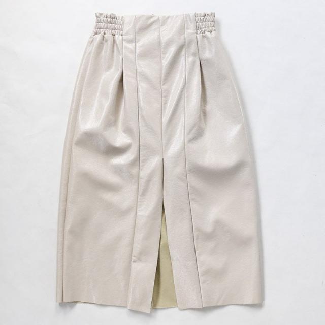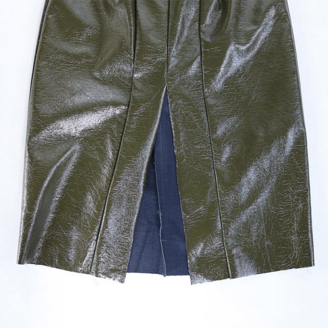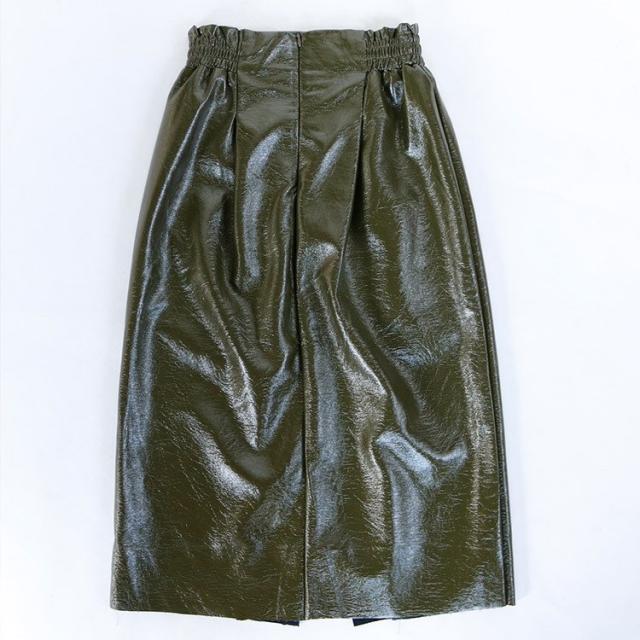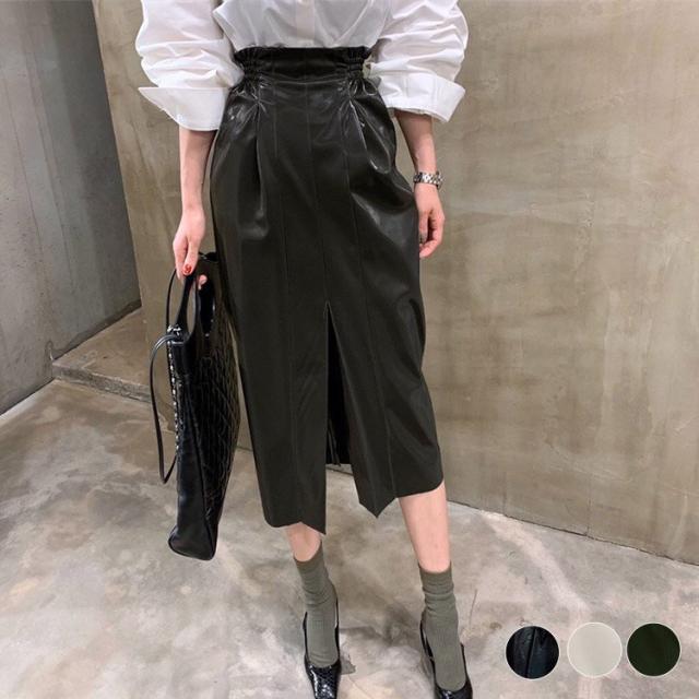 レザースカート タイト レディース ハイウエスト スリット ペンシルスカート プリーツ 光沢 白 カーキ 黒 韓国ファッション メール便