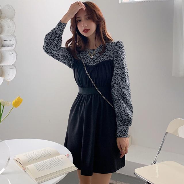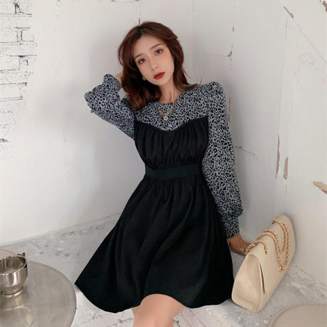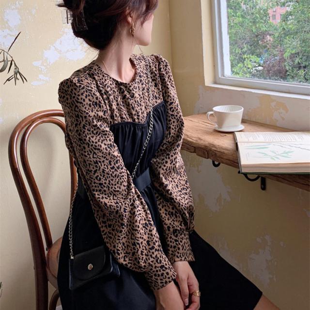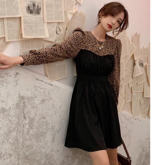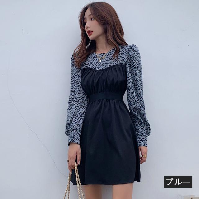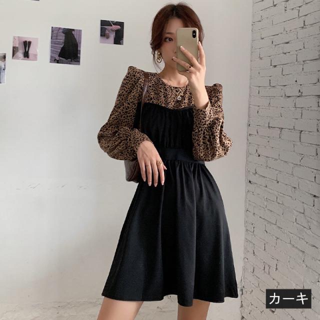 Aラインワンピース レディース ショート丈 フレアワンピース ヒョウ柄 長袖 通勤 フォーマル お呼ばれ ワンピース 体型カバー ファッション S M L XL