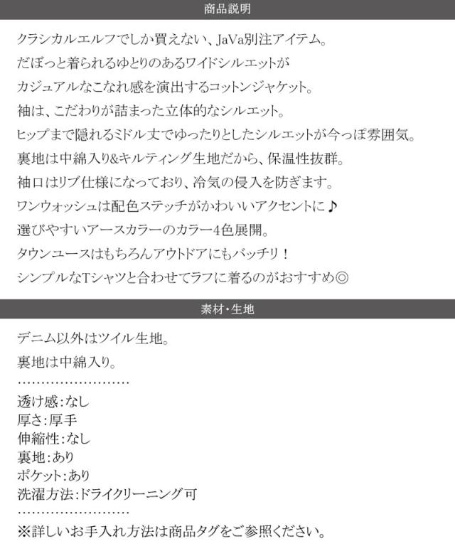 ★《JaVa ジャバコラボ》暖か大人カジュアル。裏地キルティングコットンジャケット★