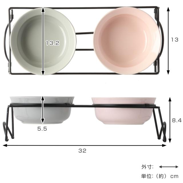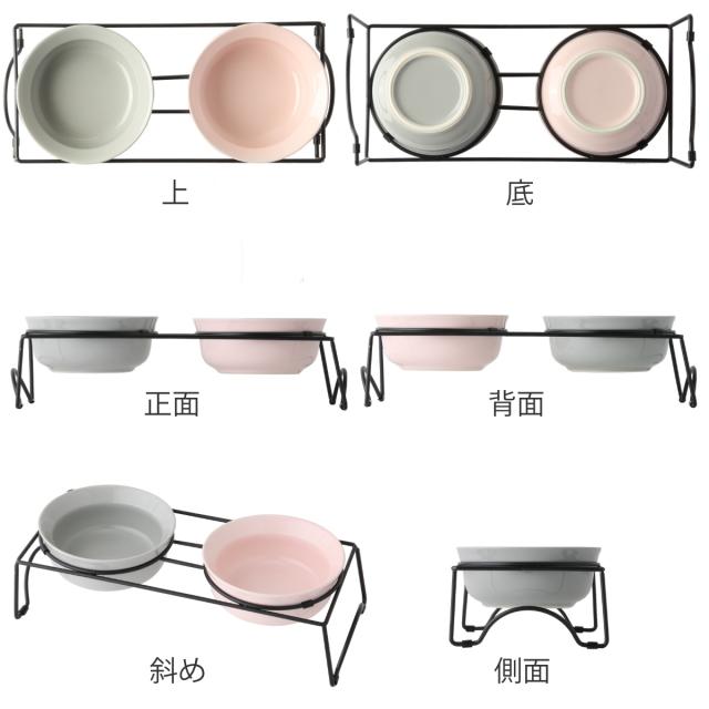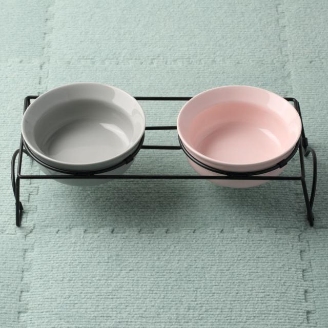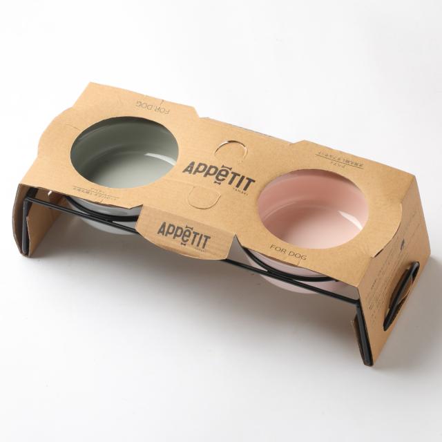 犬 犬用 食器 ボウル ダブルセット グレー/ピンク AppeTIT DOG ROUND M 390ml イヌ 食器台 ( 陶器 スタンド 台 フードボウル ペット用品 ペット用 えさ エサ 餌入れ ご飯入れ いぬ 安心 電子レンジ 食洗器 対応 水入れ )