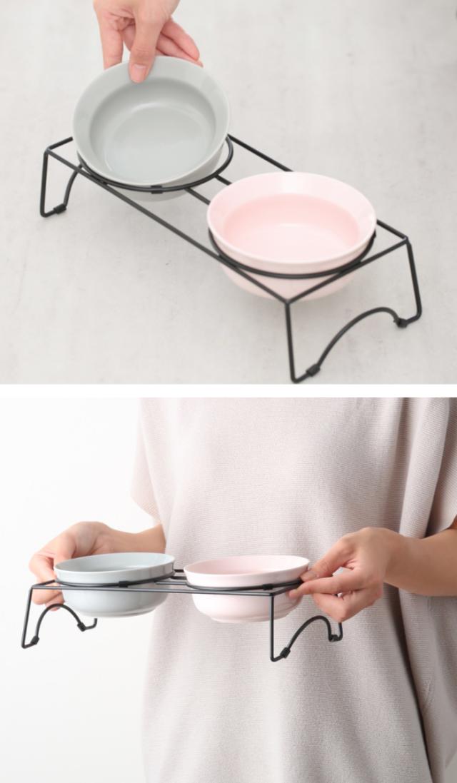 器とスタンドが別々になる仕様なので、フードボウルだけでも使用できます。使いやすく片づけや持ち運びしやすい、飼い主さんにとってもストレスフリーなセットです。
