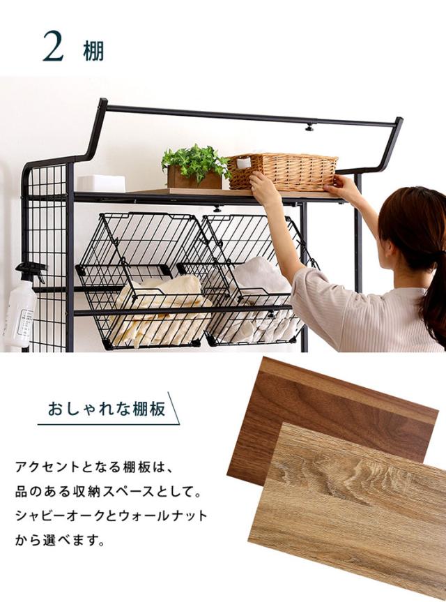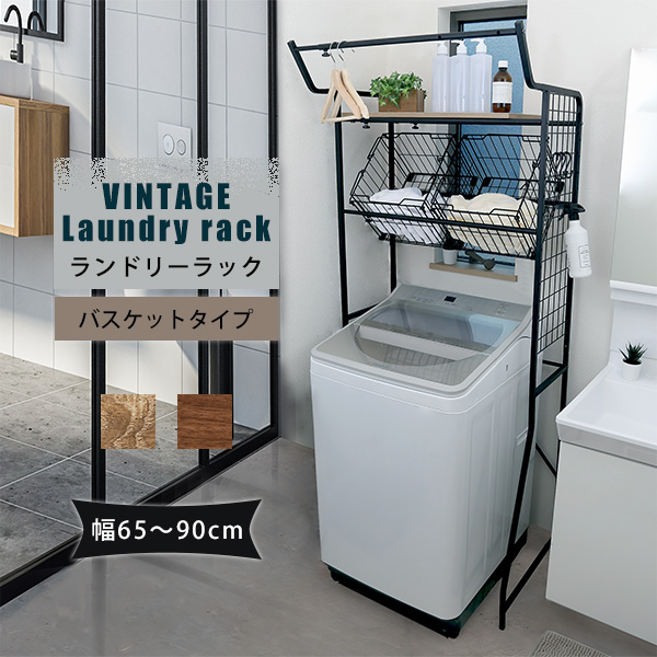 【幅65〜90cm】ヴィンテージ ランドリーラック バスケットタイプ 2色対応 ランドリー ラック おしゃれ 洗濯棚 棚 収納 スリム 洗濯 洗濯機 すき間 洗面所 脱衣所 壁面収納