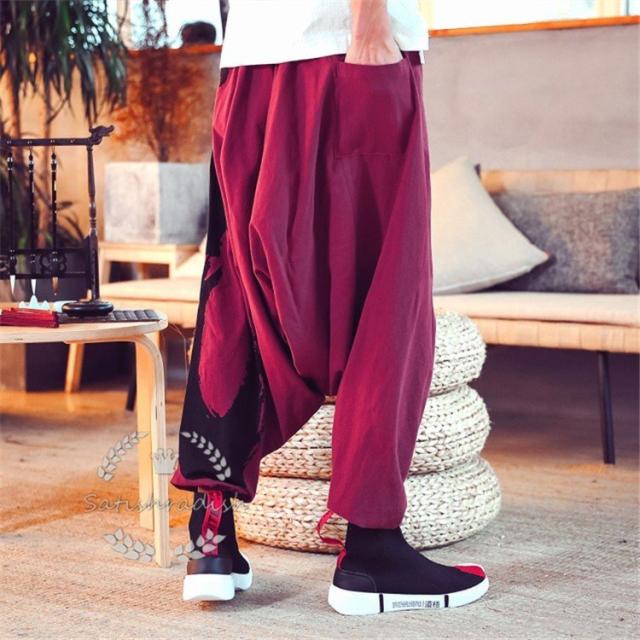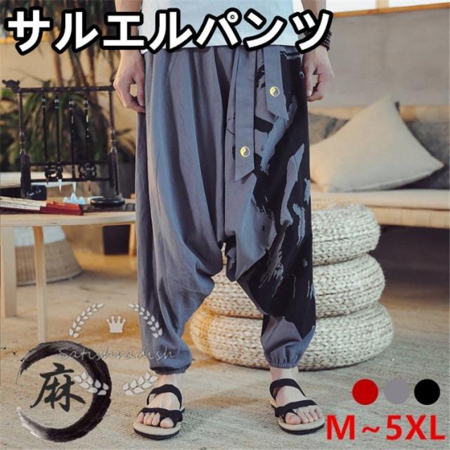 サルエルパンツ メンズ ワイドパンツ リネンパンツ 花柄 綿麻 ゆったり チノパン ロングパンツ 春夏秋 ジョガーパンツ カジュアル 通気性