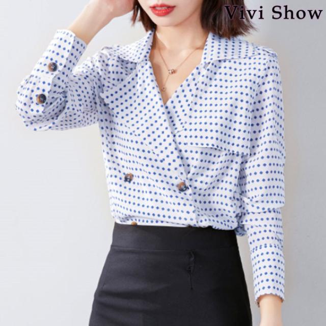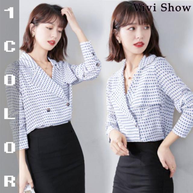 レディース 可愛い 長袖 ブラウス シャツ ドット柄 シャツ ジャケット風 大人かっこいい vivishow