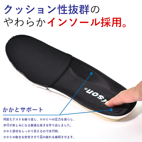 ふかふかインソールを採用したクッション性抜群の足にやさしいメンズウォーキングシューズ。