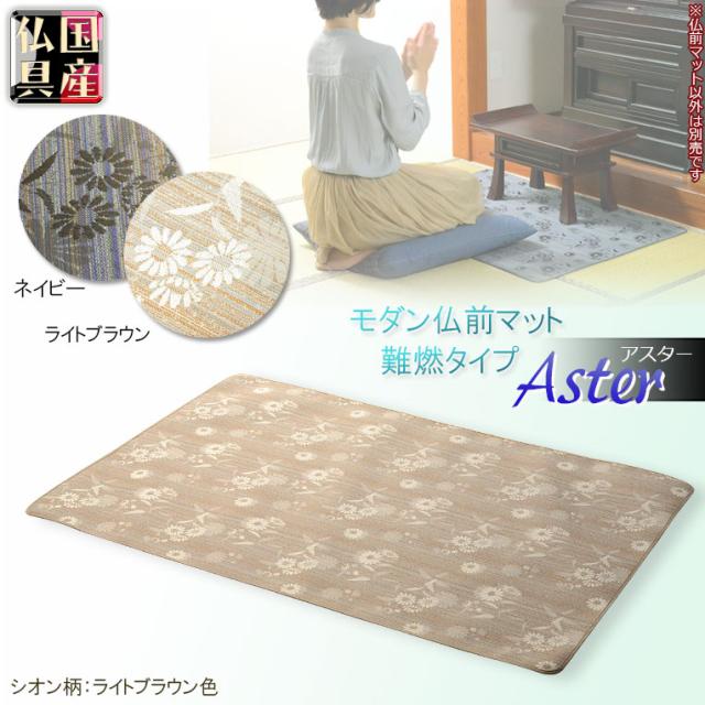 国産仏具【難炎仏前マット:アスター シオン柄ライトブラウン色】仏壇用仏具 防炎 防炎マット 経机 絨毯 カーペット 敷物 送料無料