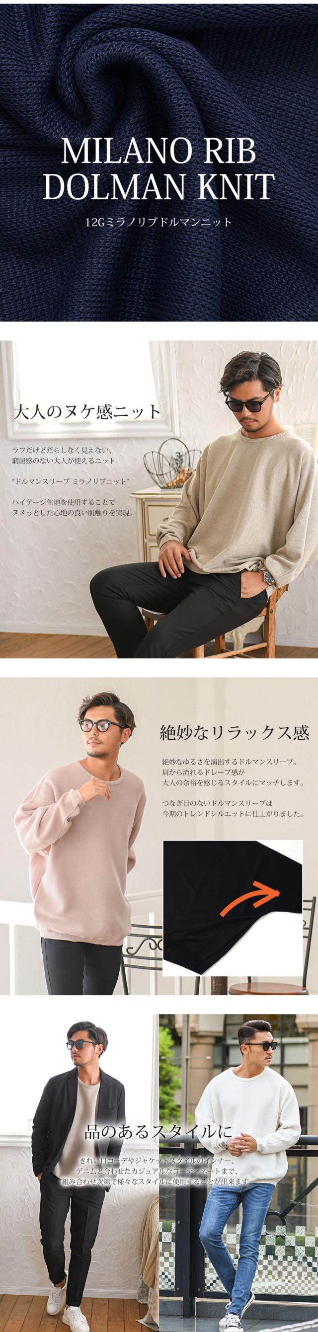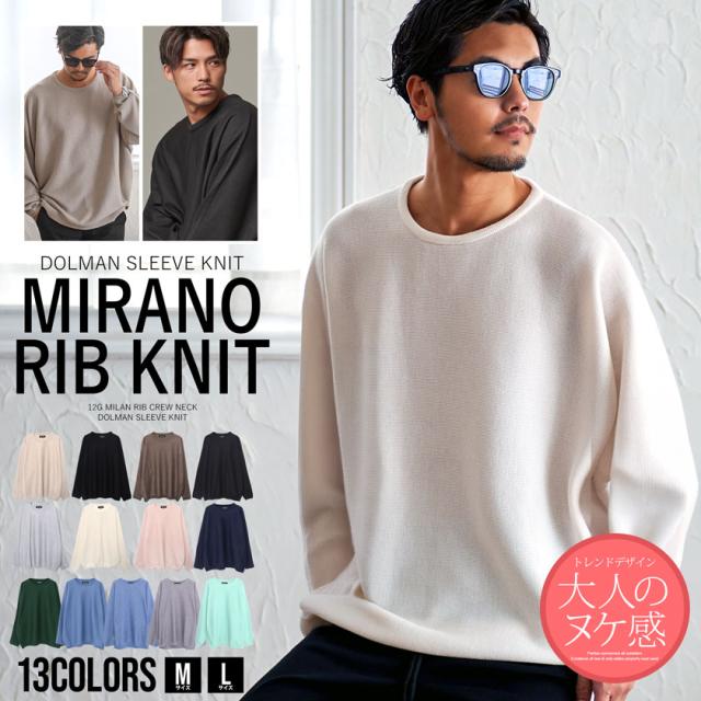 セーター ニット メンズ ミラノリブ ドルマン セーター 大人 春ニット 12G メンズ ドルマンスリーブ クルーネック 大きいサイズ ブランド おしゃれ 無地 ハイゲージ カジュアル シンプル ユニセックス 男 男性 服 春 CavariA 20代 30代 40代 ファッション [CASS21-07]