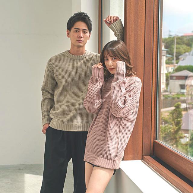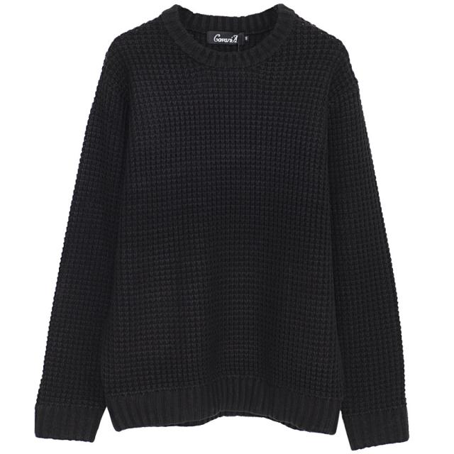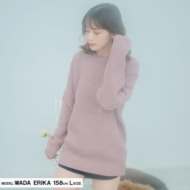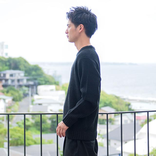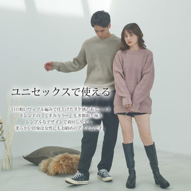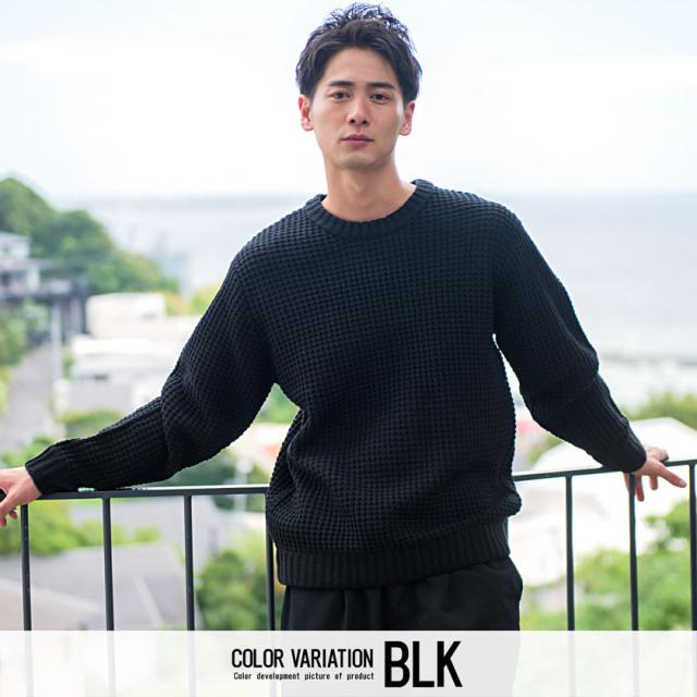 ニット セーター メンズ 長袖 トップス クルーネック ワッフル編み ヘヴィーウェイト 厚手 無地 大きいサイズ ビッグシルエット ユニセックス レディース 黒 白 BITTER系 ビター系 CavariA キャバリア 秋 冬 2021 即日発送配送について