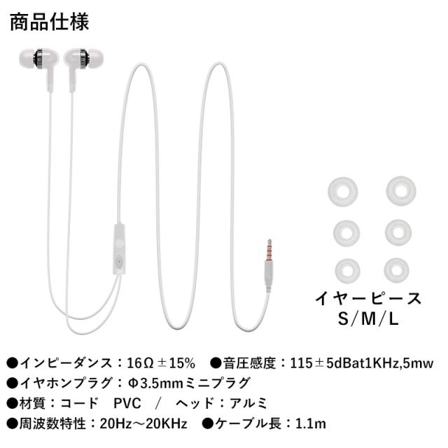 イヤホンマイク 良音質 イヤホン 有線 マイク内蔵 カナル型 ジャック式 マイク イヤホンマイク