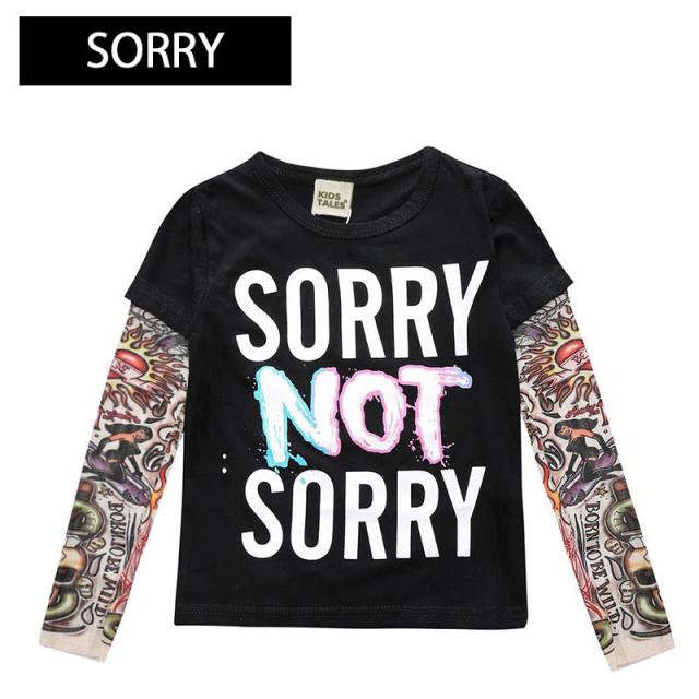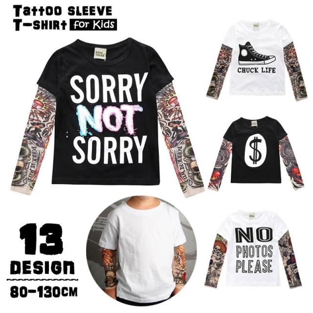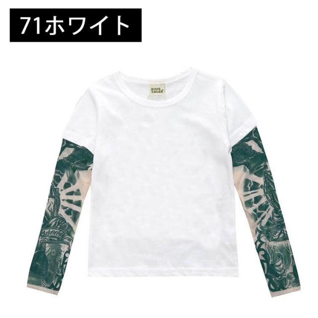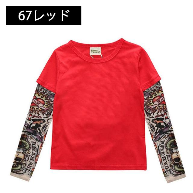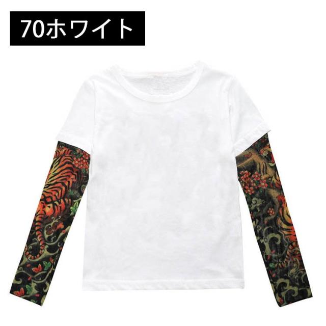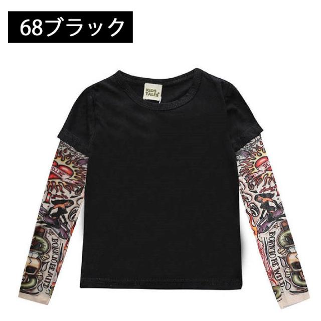 Tシャツ 長袖 子供服 キッズ ベビー 男の子 女の子 タトゥースリーブ ロンT 重ね着風 ストリート系 トップス ドクロ スカル フェイクデザイン