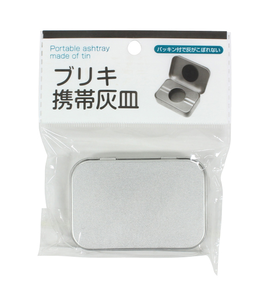 パッキン付きで灰がこぼれないブリキ製の携帯灰皿です。