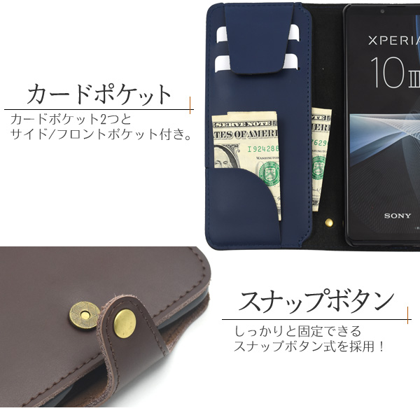 スマホケース Xperia 10 III SO-52B SOG04 III lite XQ-BT44 手帳型 牛革 携帯ケース 無地 滑らか質感 カード落下防止 フラップ付き 上品 携帯ケース ベーシック お洒落 可愛い シンプル オシャレ おしゃれ スマホカバー かわいい auスマホ au携帯カバー スマートフォンケース
