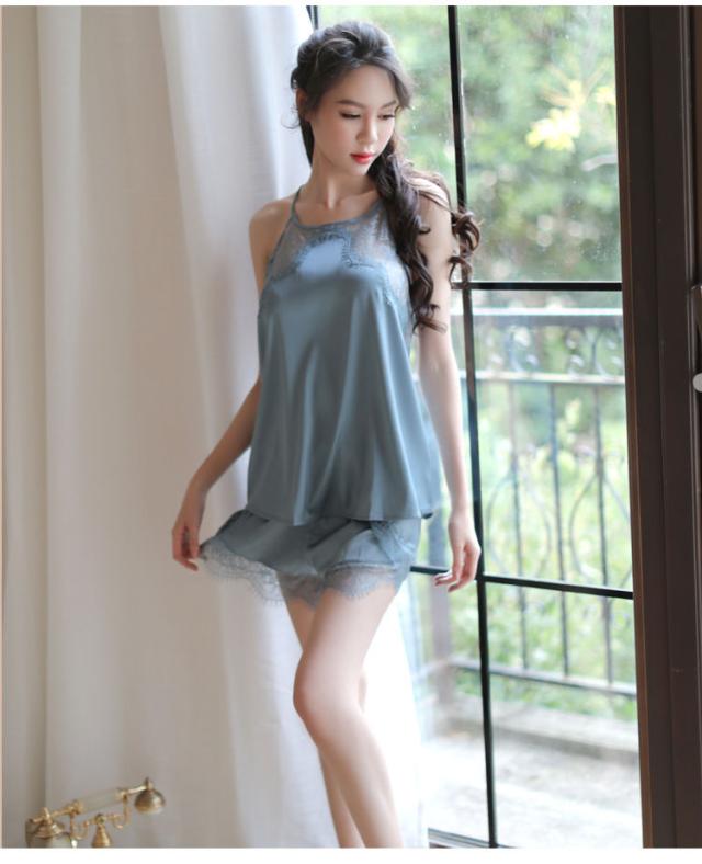 キャミ&ショートパンツ 2点セット エレガント 韓国風 透けレース 裾フリル ミニ丈 背中あき 細肩紐 体型カバー 涼感 かわいい ルームウェア ナイトウェア 部屋着 お泊り 撮影用 2色 ベビードール 地雷系 量産型 大人 撮影用 コスプレ風 透け感 ハロウィーン クリスマス 衣装