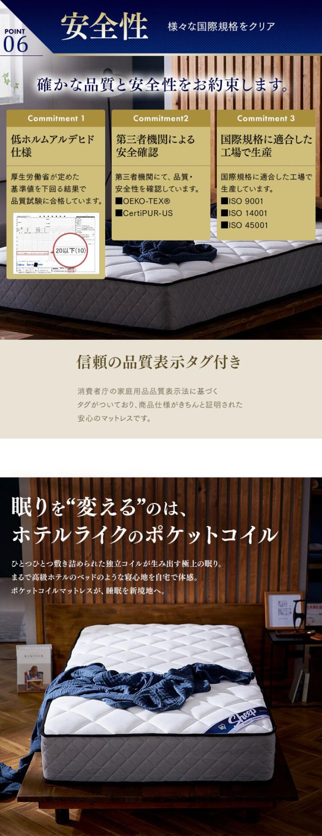 高密度ポケットコイルとふっくらウレタンが、やわらかく包み込まれるような寝心地を実現。