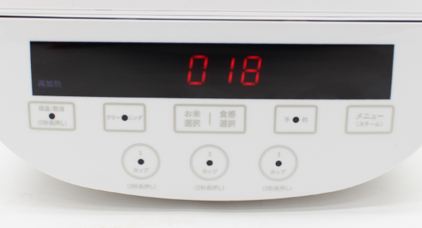操作パネルが天面にあり、糖質オフ炊飯、白米、タイ米、スチーム、早炊き、再加熱、保温、予約、クリーニングをお好みで使用できます。通常炊飯モード、白米は1〜5合炊き、玄米に変更すると1〜3合炊きできます。糖質カットモードは1〜3合炊きができます。カレーやピラフ時のタイ米は1〜3合炊きができます。野菜などの素材を生かした蒸し調理機能では、スチーム機能で野菜や根菜、コーン蒸しなどができます。その他、おかゆや炊き込みご飯も作れます。