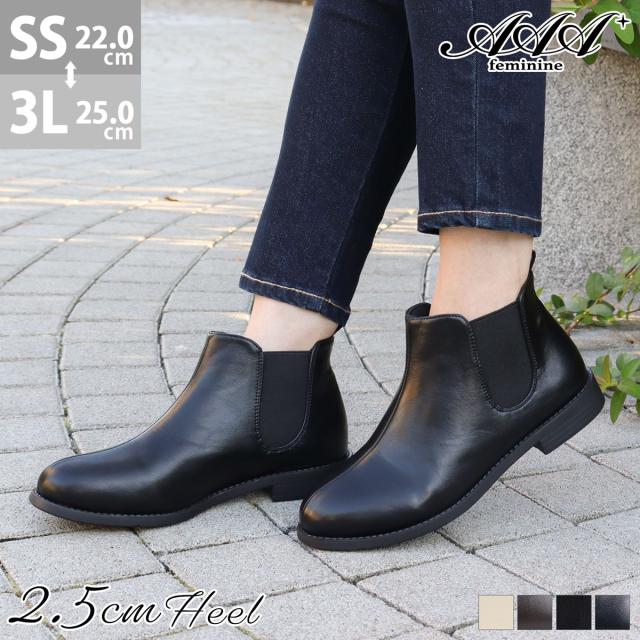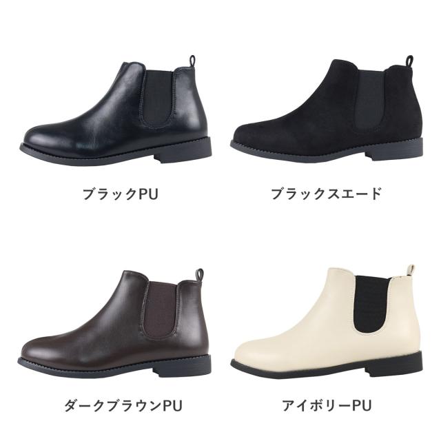 ブーツ ショートブーツ レディース サイドゴアブーツ 2.5cmヒール 靴 歩きやすい ローヒール スエード 軽量 22.0cm〜25.0cm 黒 ブラック アイボリー AAA+ Feminine サンエープラスフェミニン No.3590