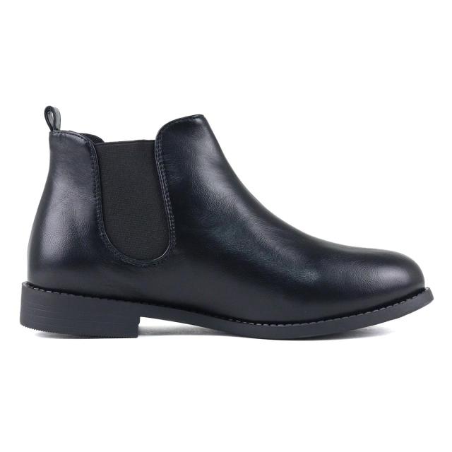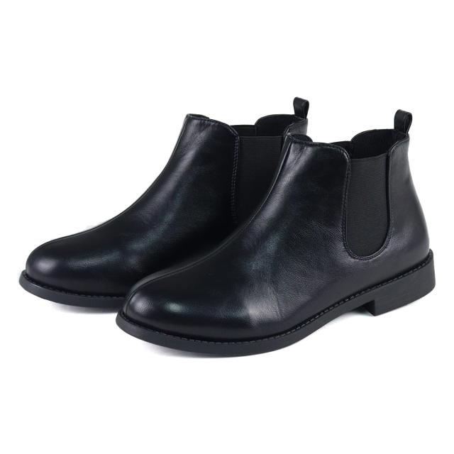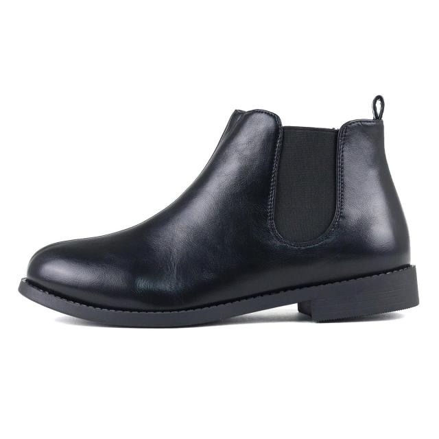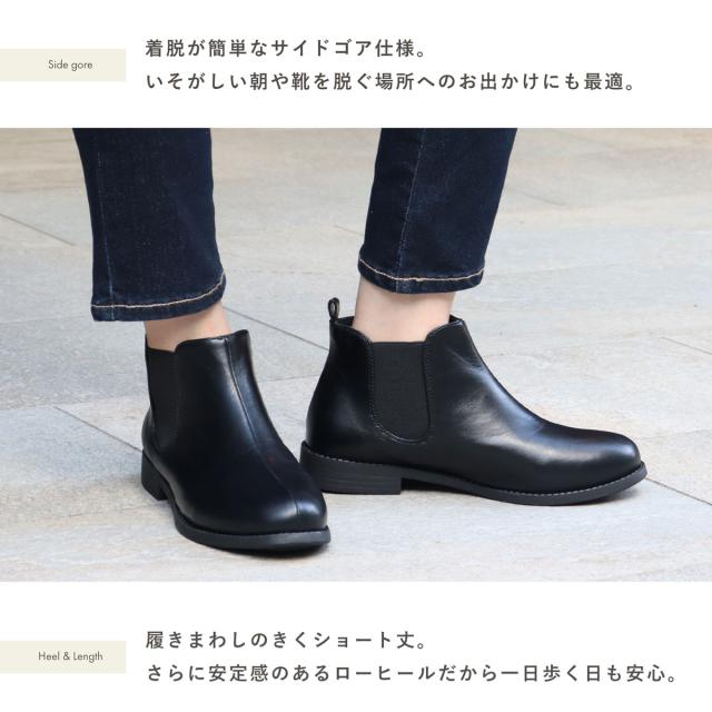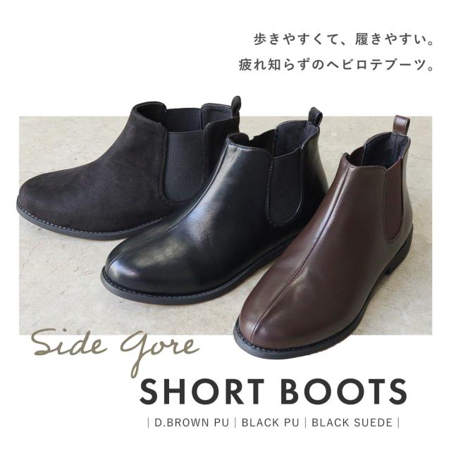 アーモンドトゥのサイドゴアショートブーツは、足首丈でスカートにもパンツにも合わせやすい定番デザイン。