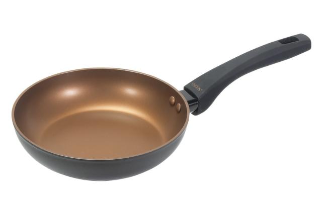 美しく洗練されたアンバーカラーは、加熱中の食材の具合が見やすく、調理のタイミングを逃しません。内面・外面・ハンドルのカラーが統一された華やかなゴールドと、側面とハンドルをブラックカラーで引き締めたクールなブラック。どちらも今までのフライパンにはないデザイン性の高さで、毎日の料理を楽しくしてくれます。